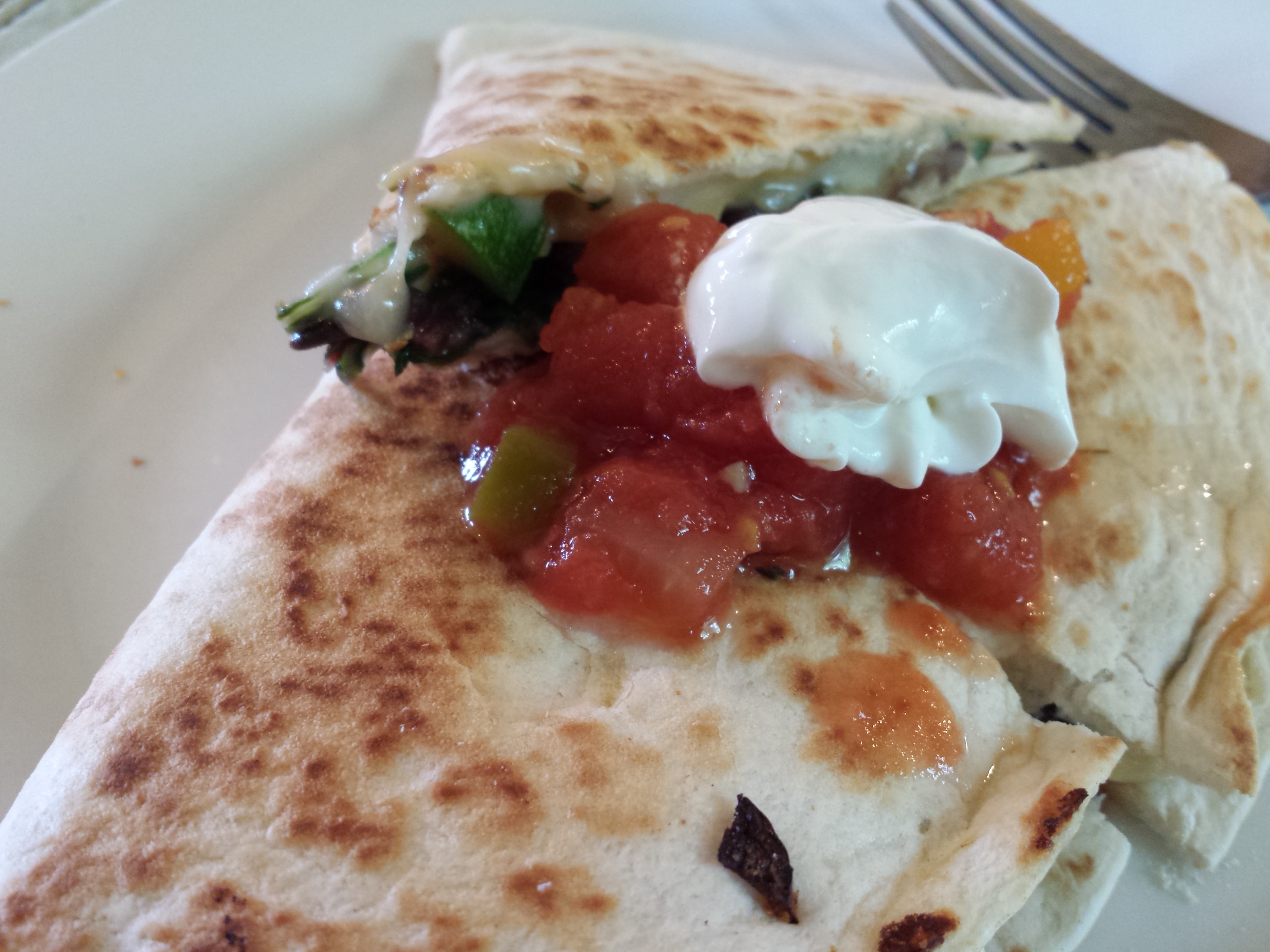 This is what I did with a bunch of swiss chard, 2 summer squash, a can of black beans, cheese, flour or corn tortillas and toppings of your choosing: Chop […]