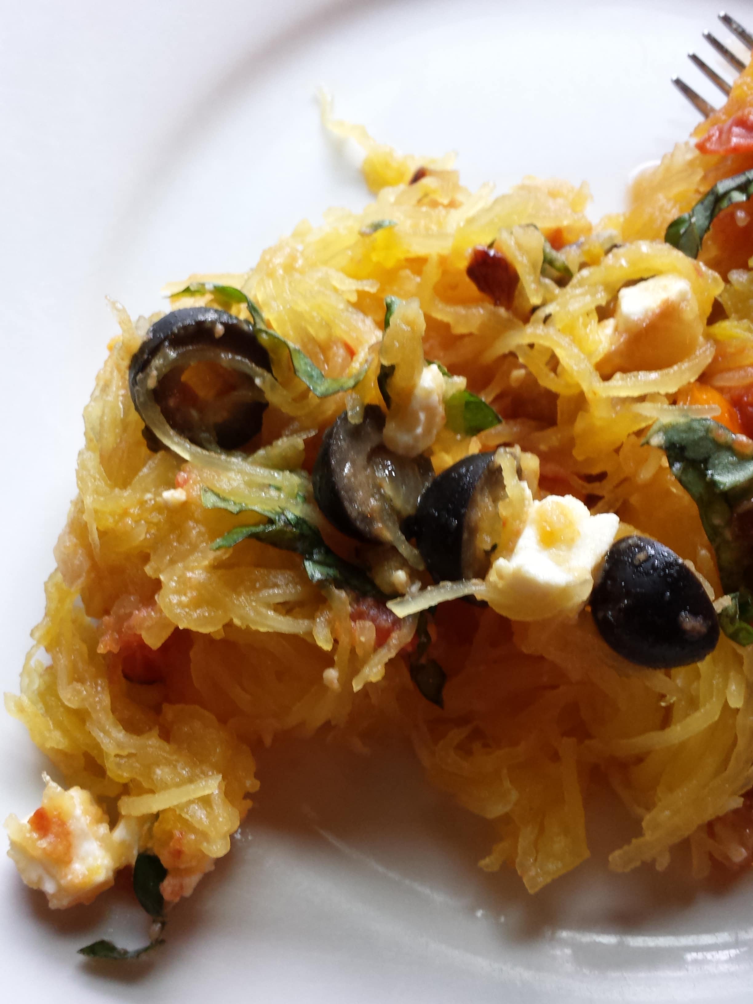 1 spaghetti squash, halved lengthwise and seeded 2 tablespoons oil 1 onion, chopped 1 clove garlic, minced 1 1/2 cups chopped tomatoes 3/4 cup crumbled feta cheese 3 tablespoons sliced […]